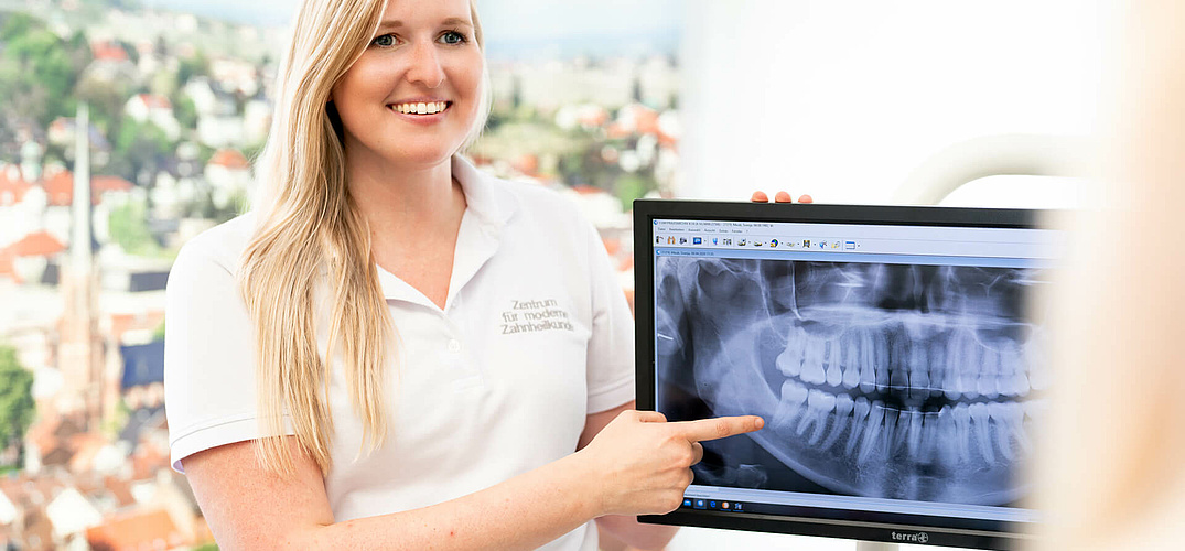 Durch den Einsatz des Operationsmikroskops (OPM) lassen sich die Zahnstrukturen besser darstellen. Viele Details des komplexen Wurzelkanalsystems können vor und während der Aufbereitung dadurch erst richtig erkannt und von unseren Zahnärzten erfolgreich behandelt werden.